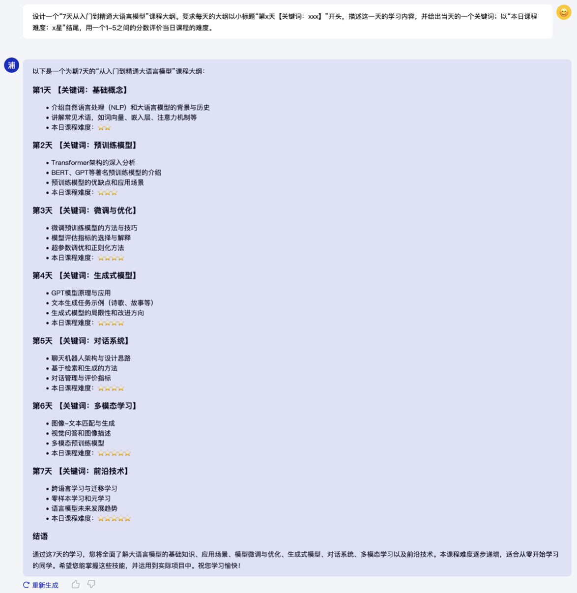 InternLM2设计的课程大纲精准遵循用户要求,如格式、数量、内容等。