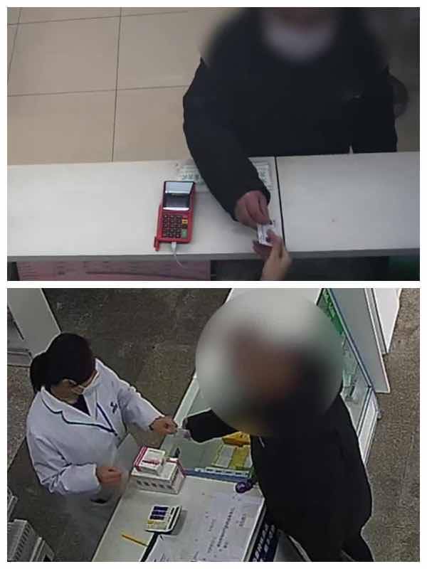 同一名老人在本市多家药店持孙先生的医保卡购置药品。 上海嘉定警方 图